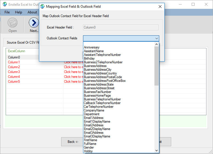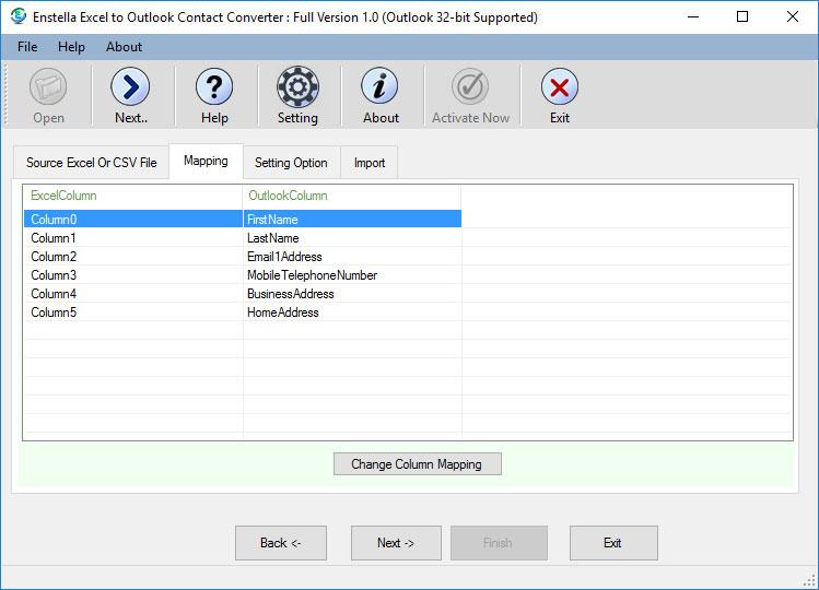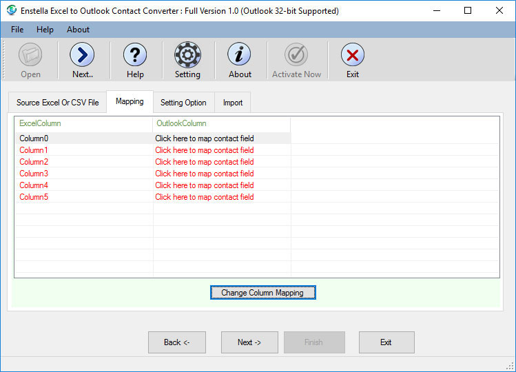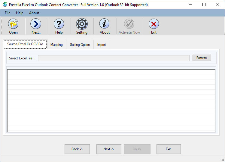 Launch Enstella Excel to Outlook Contact Converter Software (Go to Start -> Programs ->Enstella Excel to Outlook Contact Converter -> Enstella Excel to Outlook Contact Converter).