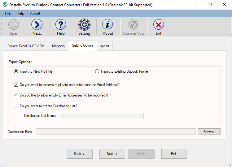 And Do you want to create Distribution list of MS Outlook formats then click the Check box button and gives the Distribution list name.