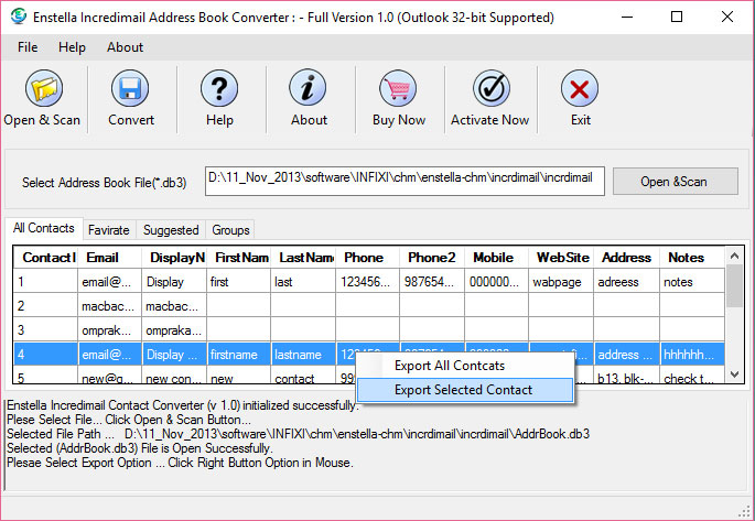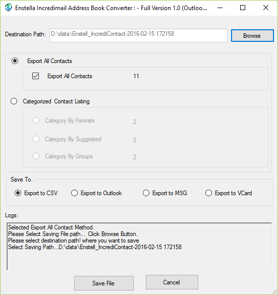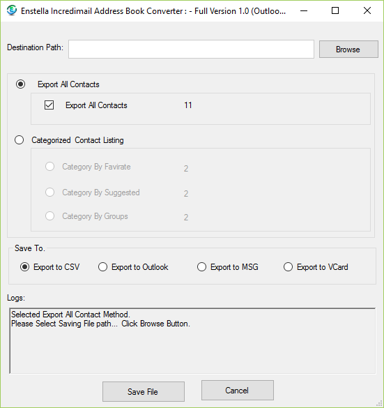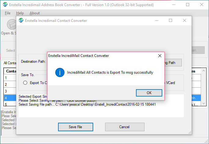 Get step by step Enstella Incredimail Contact Converter Software Working & See how its working & Export Incredimail Contact to PST, MSG, vCard and CSV format.