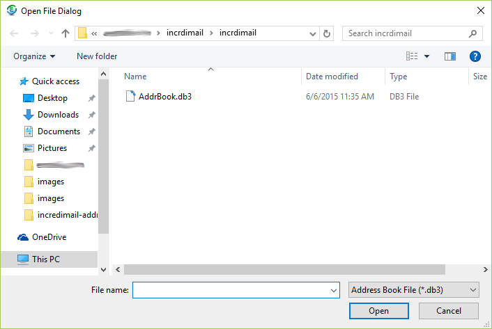 After Selecting the appropriate Addrbook.db3 File, Click the Open Button