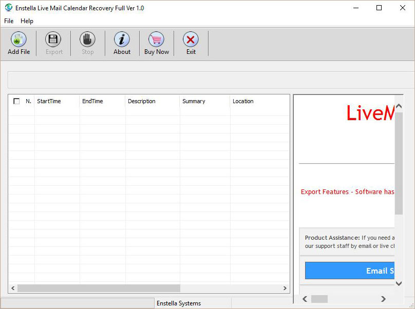 Launch Enstella Live Mail Calendars Recovery Software (Go to Start -> Programs ->Enstella Live Mail Calendars Recovery-> Enstella Live Mail Calendars Recovery).