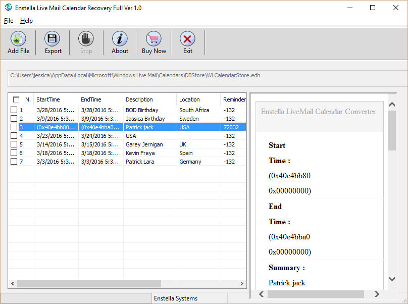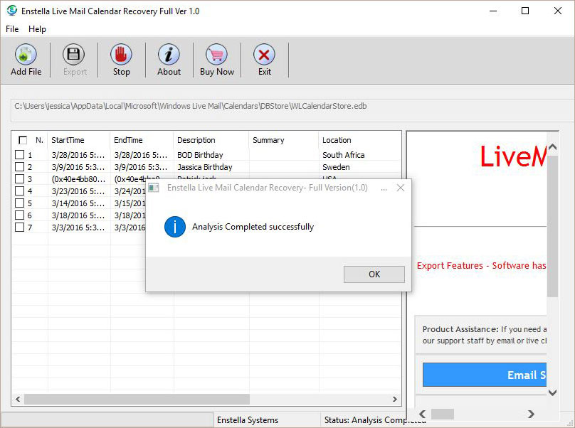 Get step by step Enstella Live Mail Calendars Recovery Software Working & See how its working & Export Live Mail Calendars to CSV