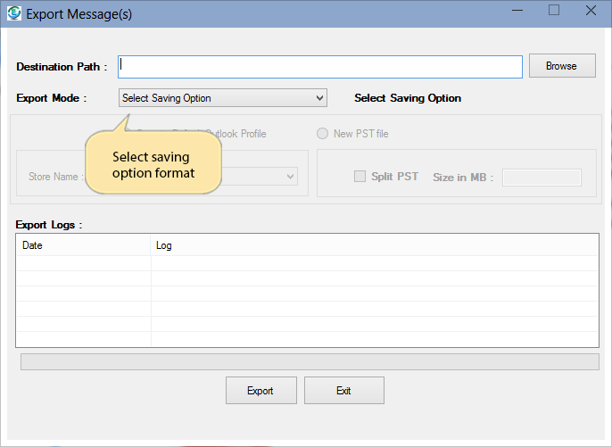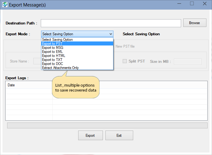 Export Mode, Software will give you multiple formats to export MBOX file into PST, EML, MSG, HTML, DOCT & TXT