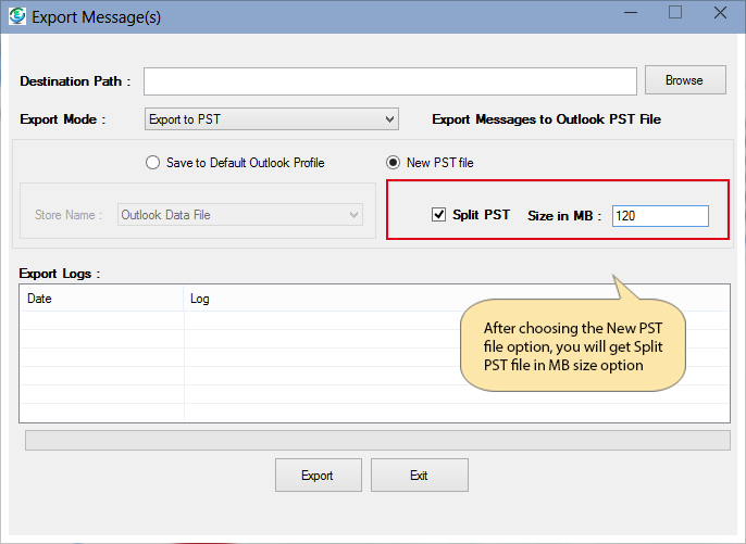 After choose New PST file, you will take option to Split PST file in MB Size