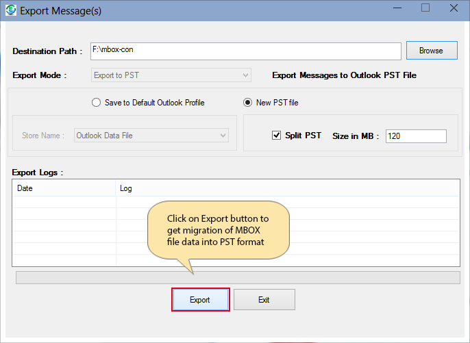 Click on export button to get your MBOX file data as PST format