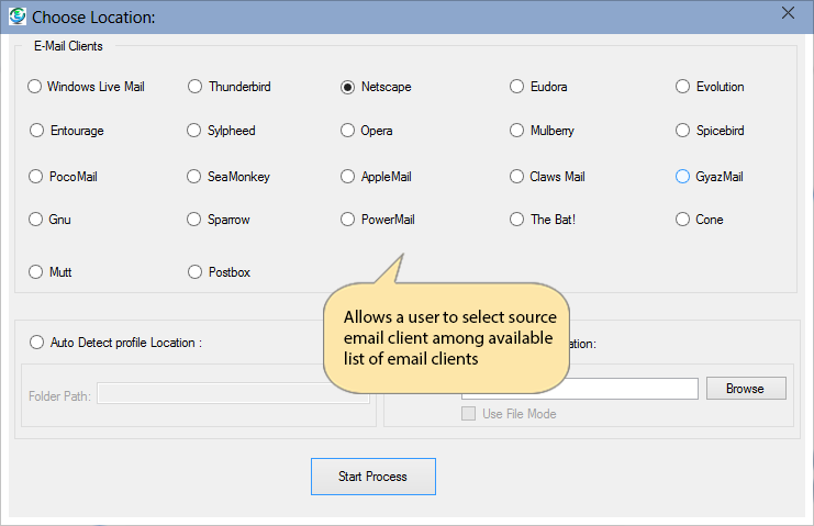 Enstella Systems for MBOX allows a user to select source email client among available list of email clients
