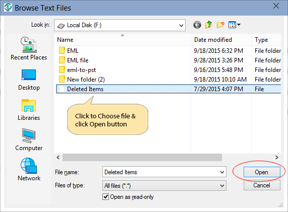 Choose file and click on Open button to proceed..
