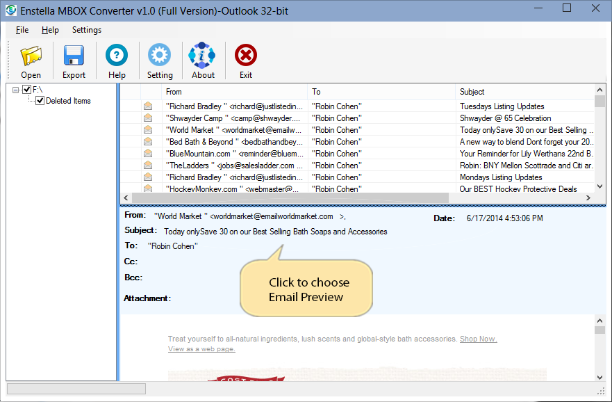 After click on individual emails, you can get preview