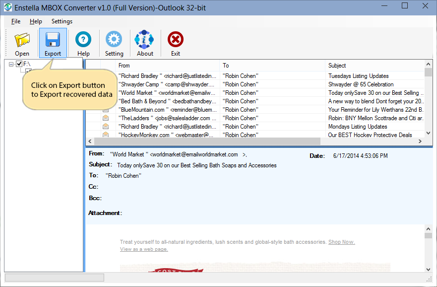 Click on Export button for exporting recovered data