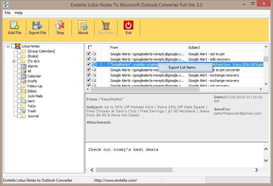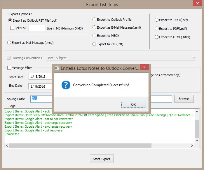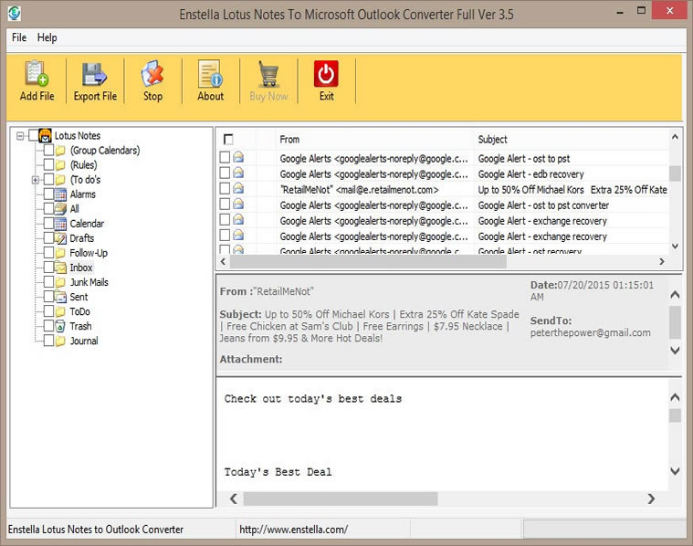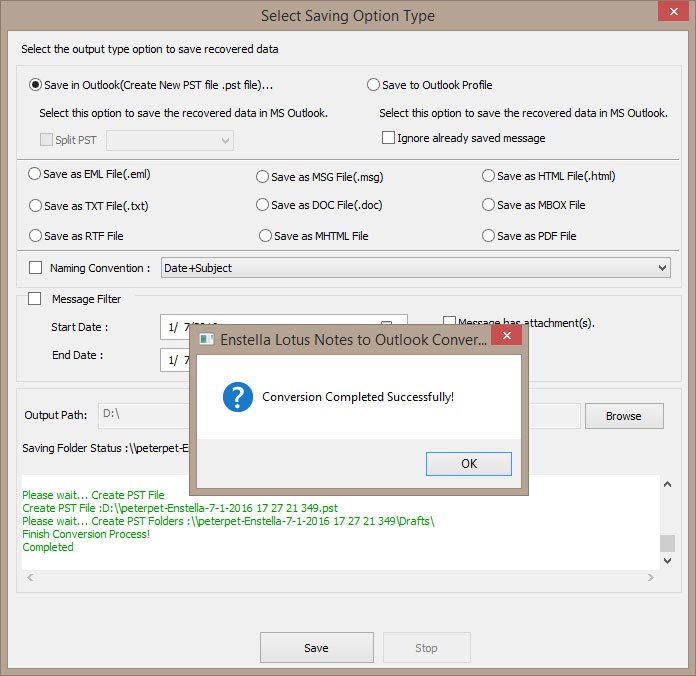 Get step by step Enstella Lotus Notes to Outlook Converter Software Working & See how its working & Export NSF to PST