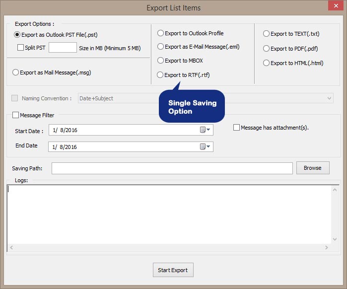 Now "Select Single Saving Option Type" dialog appears on your computer screen: