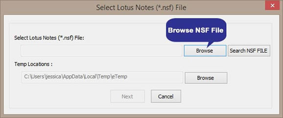 If user have no idea that where is their NSF file located so our Click on search option to that helps to user for searching NSF file in hard disk
