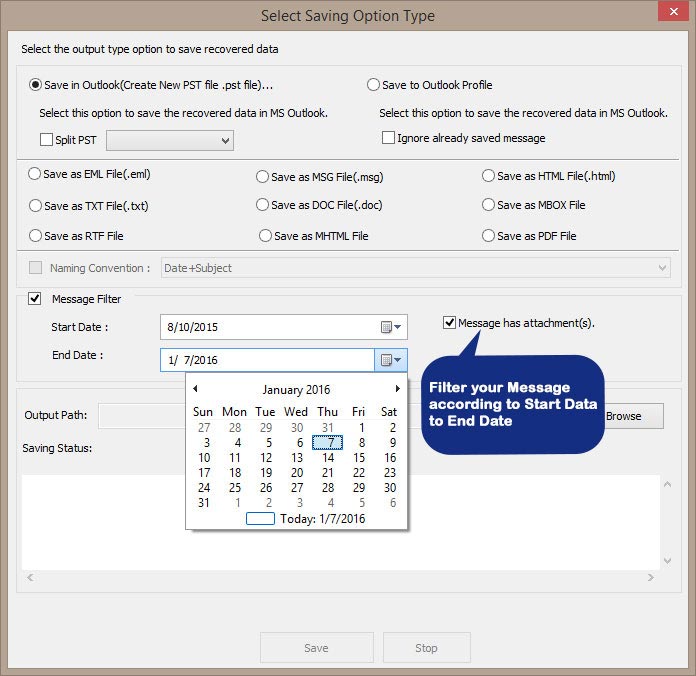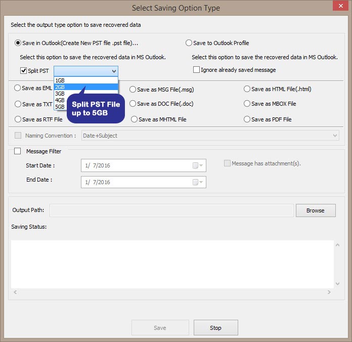 Now "Select Saving Option Type" dialog appears on your computer screen: