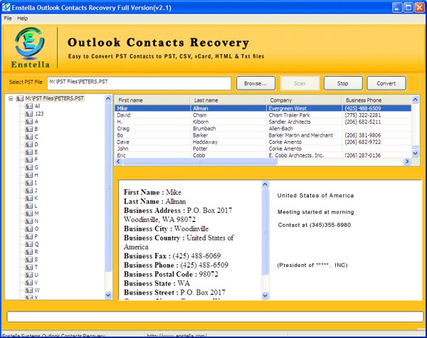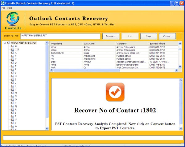 Enstella PST Contact Recovery tool is the best Outlook Contact conversion program which efficiently convert PST Contacts into New Outlook PST File, CSV, TXT and HTML.