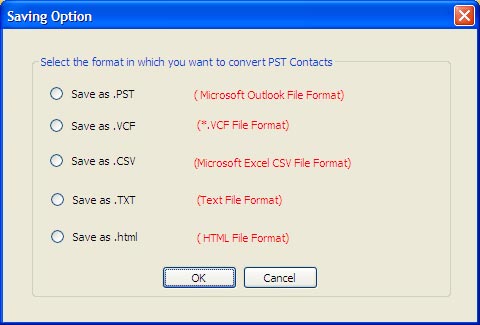 Note: Our Software convert PST Contacts in 5 different file extensions like PST, CSV, vCard, HTML & Txt file on your computer after successful Outlook Contacts Conversion.