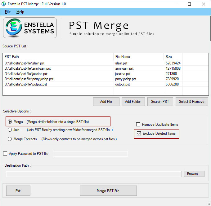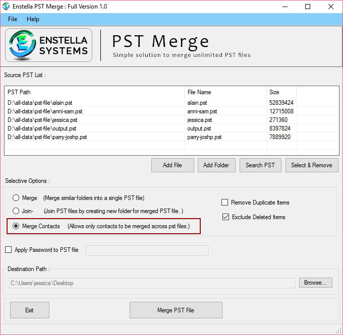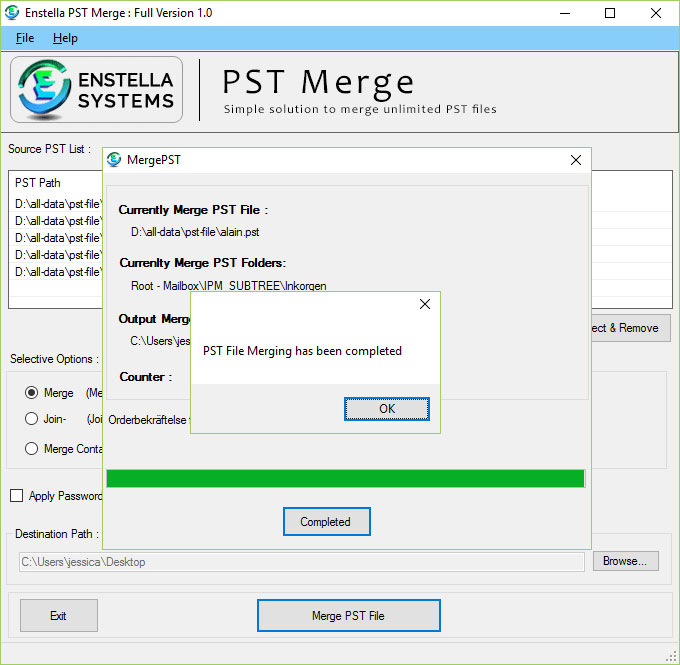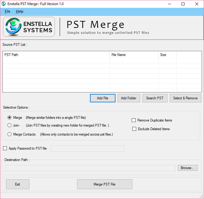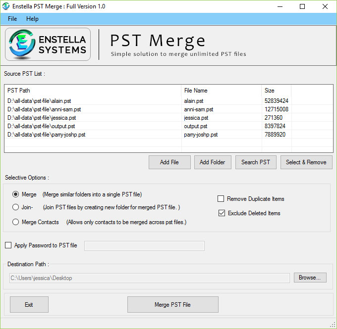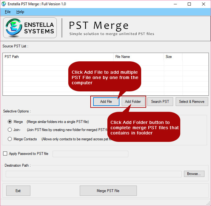 Enstella Outlook PST Merge program which efficiently Merge multiple Outlook PST Files into Single PST File.