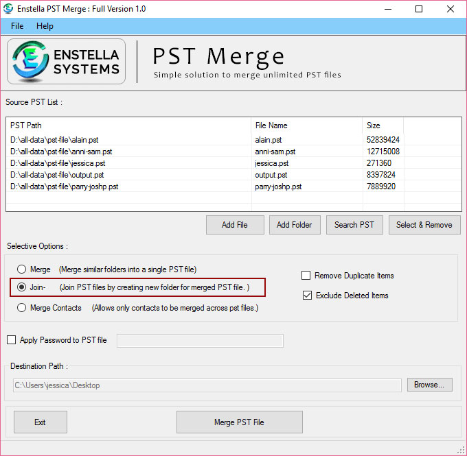 Click the Join Redio button that allow user to join PST files by creating new folder for merged PST file: